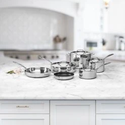 With this cookware set you never have to worry about not having the right pot or pan, with the 17 included pieces you are guaranteed to have the pan for the job. All of this cookware is Hard Anodized providing a nonstick coating that is extremely durable which won’t flake like other non-stick finishes. The interior of the hard anodized cookware is lined with titanium reinforced Quantanium providing a non porous finish to easily release food and cleans just as easily. The aluminum provides excellent heat distribution, eliminating hot spots and providing consistent cooking temperatures. Cuisinart backs the 17 piece hard anodized cookware set with a lifetime warranty and includes a use and care guide with each set.