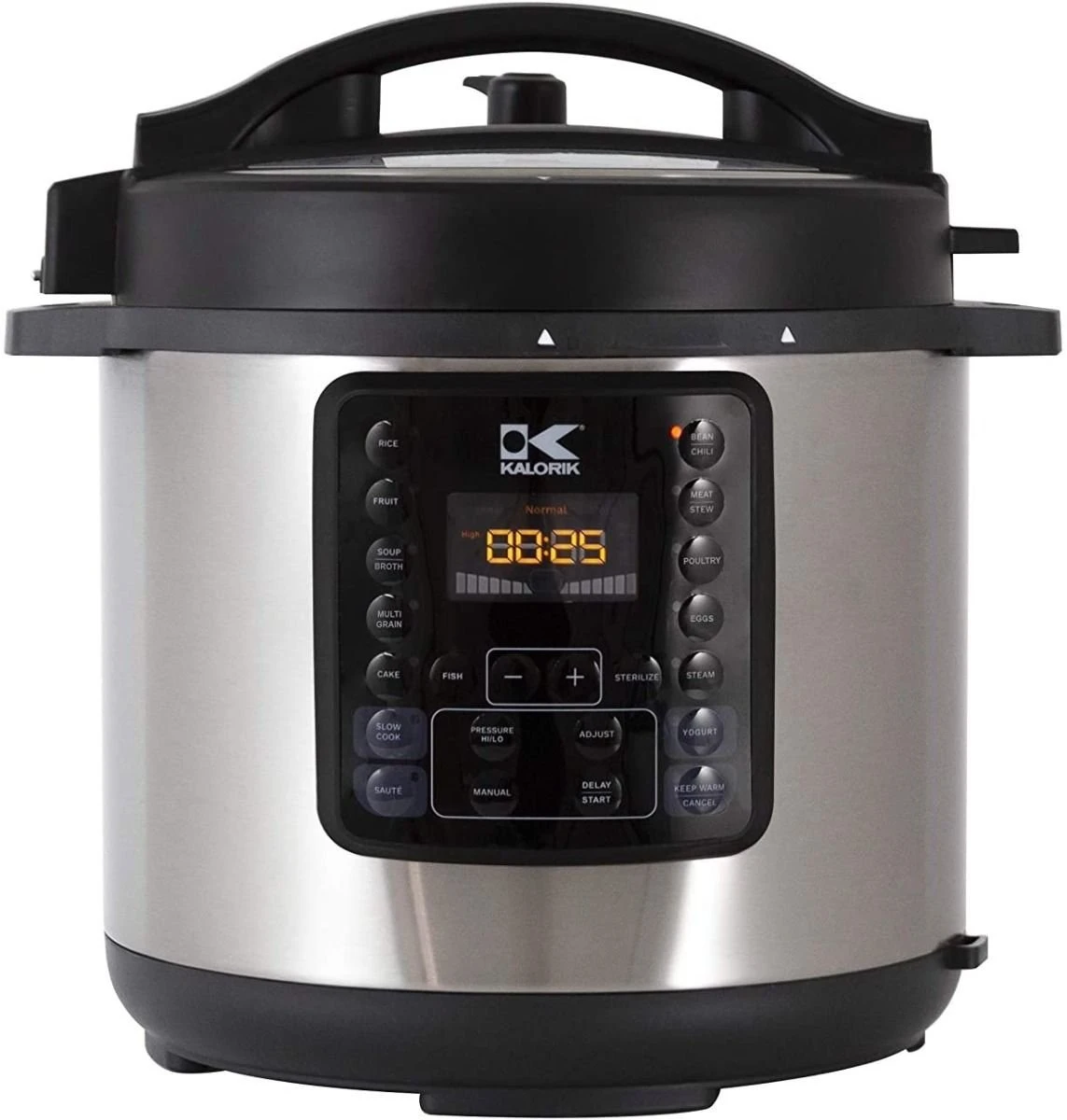 Cook smarter not harder with the Kalorik 6-Quart 10-in-1 Multi-use Electric Pressure Cooker. This very unique appliance can do everything from slow cooking to yogurt making, to baking. Despite its versatility, this pressure cooker is extremely easy to use. With 16 one-touch functions, you can make any meal with ease. With a 6-Quart Capacity, this pressure cooker is ideal for making most meals, side dishes, and even desserts. This pressure cooker is designed to make your life easier, so it cooks 70% faster than traditional pressure cookers. Make your favorite anything with the Kalorik 6-Quart 10-in-1 Multi-Use Electric Pressure Cooker, get yours today!
