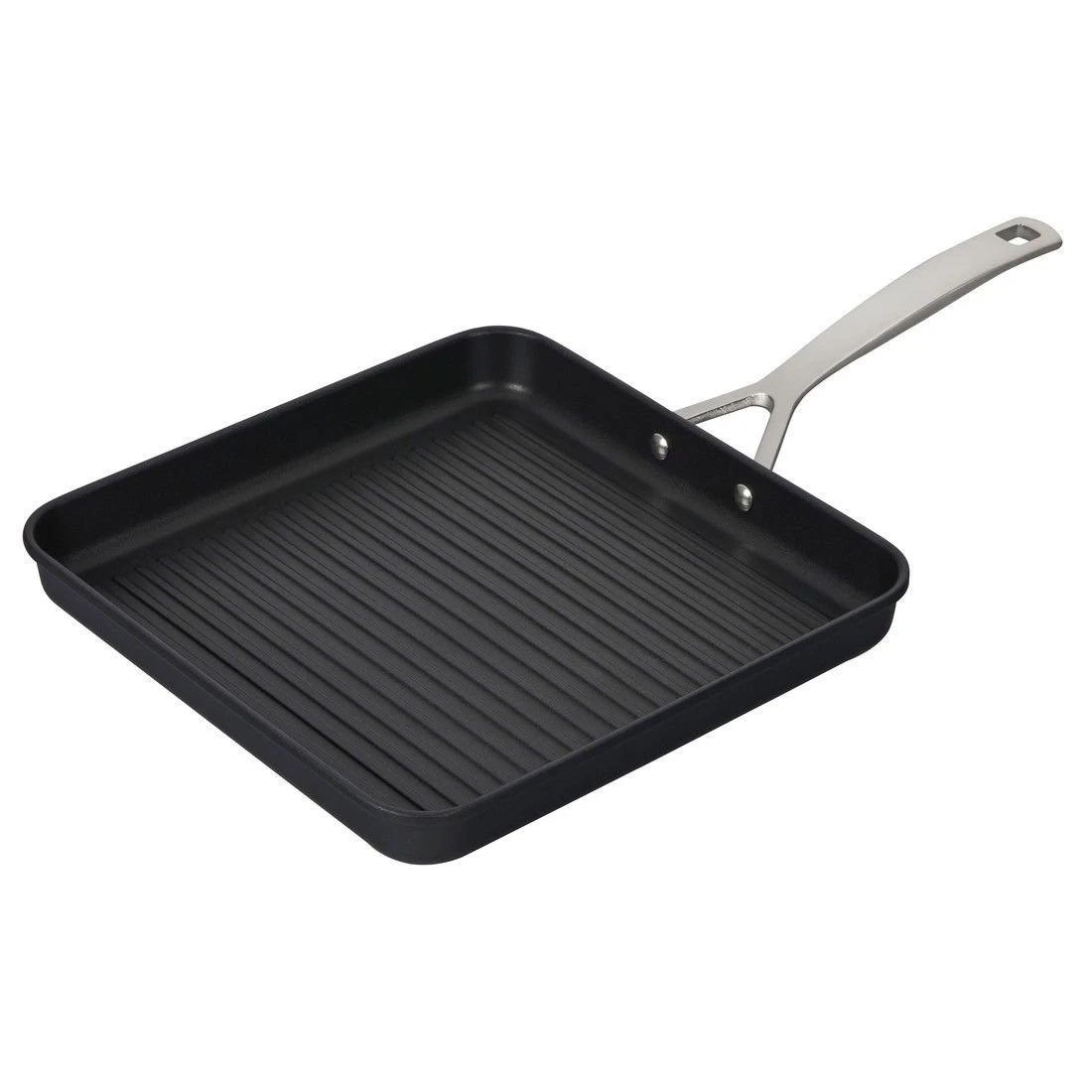 Enjoy the flavor & benefits of outdoor grilling with all of the convenience of cooking inside, all year round. The Toughened Nonstick Pro 11″ Square Grill Pan by Le Creuset is perfect for grilling chicken breasts, vegetables, steak, shrimp & even delicate fish from your stovetop. The triple-reinforced toughened nonstick coating is 4xs stronger than the TNS Classic Collection & is guaranteed to never peel, flake or chip. Sear your steak for those picturesque grill marks & finish them in an oven – the pan is oven safe to 500°F. Feel free to use metal utensils without worrying about scratching the pan’s surface.