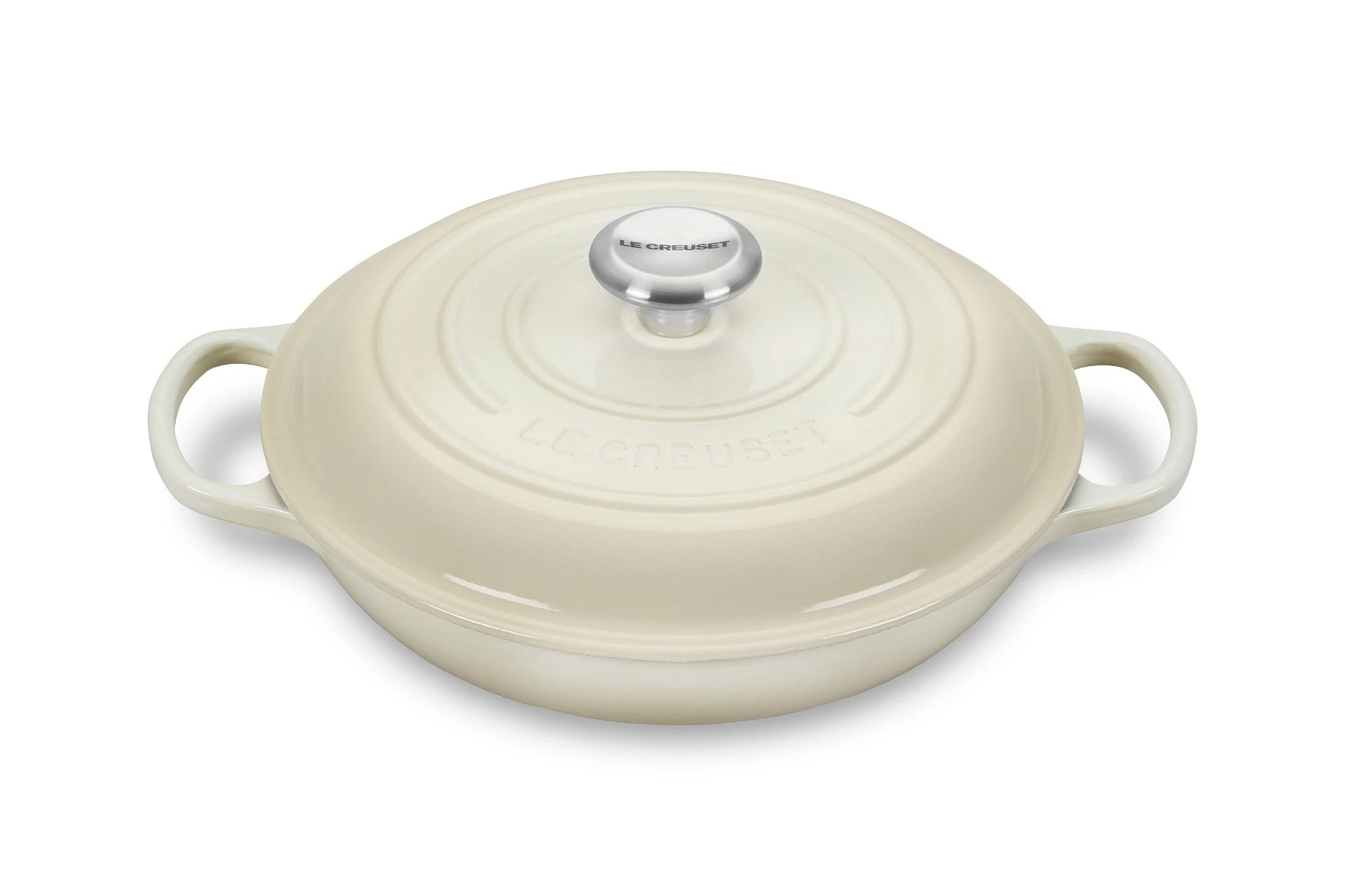 Le Creuset 2.25-Quart Signature Braiser with Stainless Steel Knob (Meringue) Features: