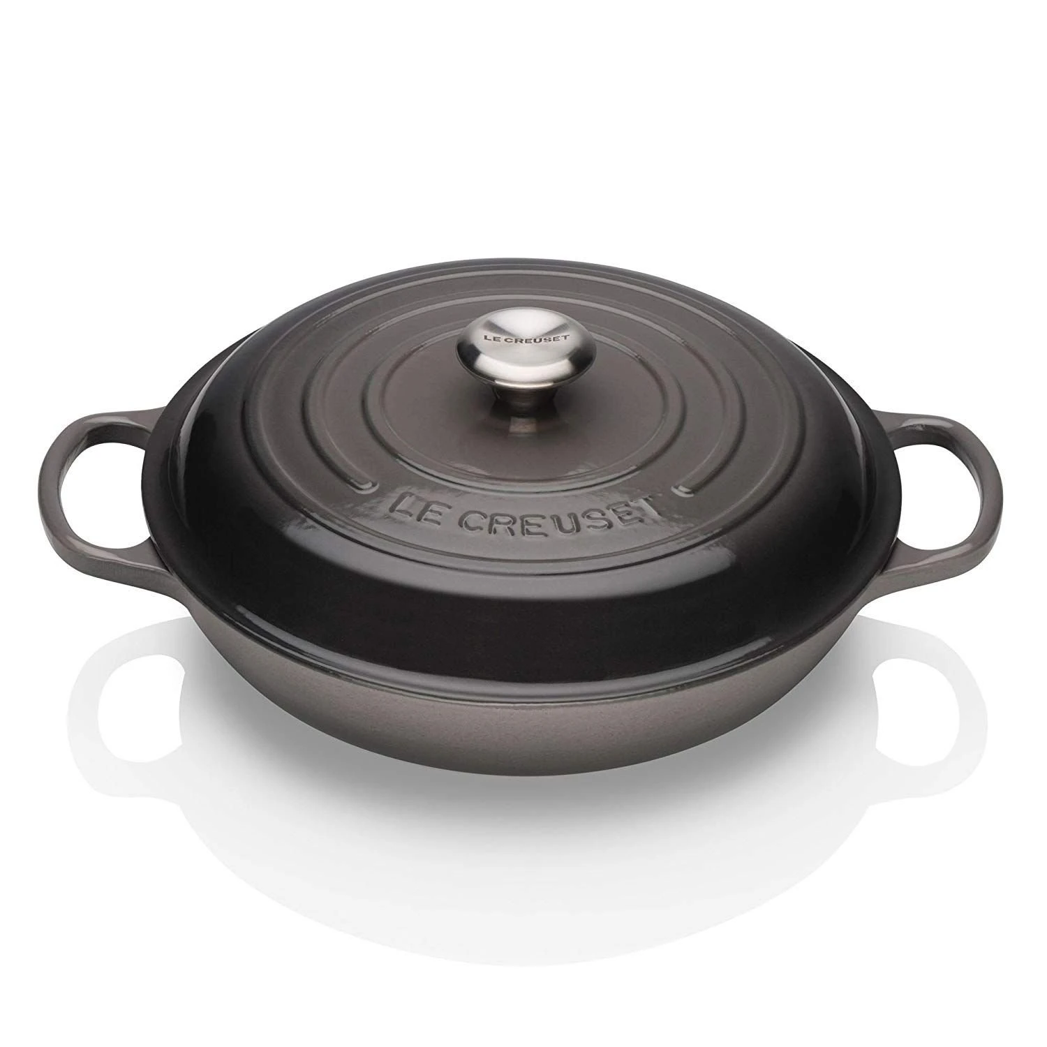 Le Creuset 2.25-Quart Signature Braiser with Stainless Steel Knob (Oyster) Features: