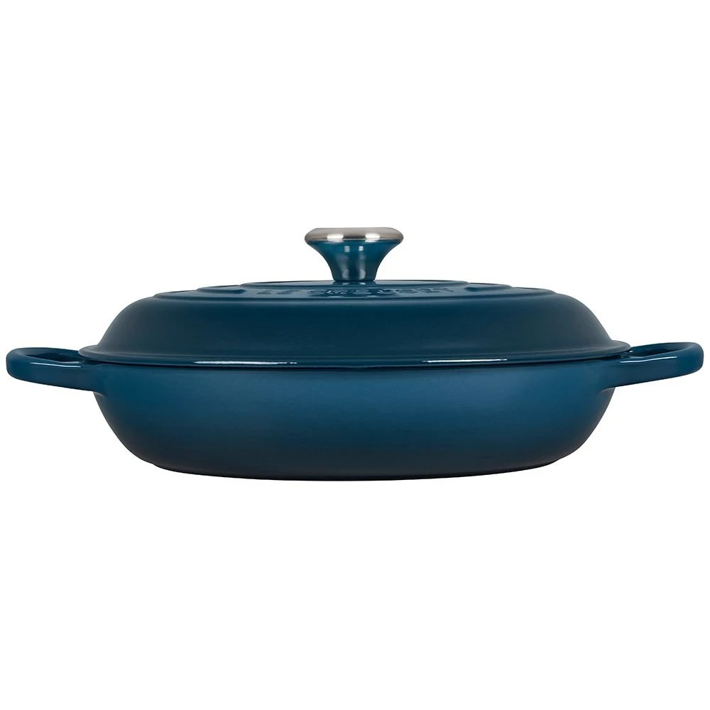 The family will rush to the table for a hearty meal braised and browned in Le Creuset’s 3.5 Quart Signature Braiser in Deep Teal. With a dome-shaped lid that locks in flavor by promoting continuous circulation of heat and moisture, plus Le Creuset’s signature enameled-coated cast iron, this braiser brings the performance you need to turn out mouth-watering braised meats and vegetables.