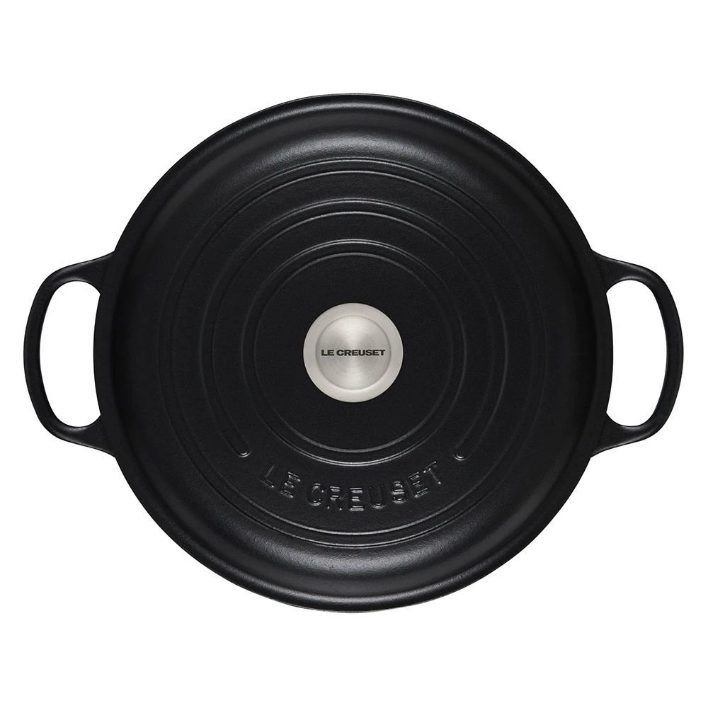 The family will rush to the table for a hearty meal braised and browned in Le Creuset’s 3.5-Quart Signature Braiser in Licorice. The modern textured design & sleek sophisticated matte black finish coordinates well with other Le Creuset cookware pieces in the Licorice Collection or mix & match with any other Le Creuset color collection for a bold look. With a dome-shaped lid that locks in flavor by promoting the continuous circulation of heat and moisture and Le Creuset’s signature enameled-coated cast iron, this braiser brings the performance you need to turn out mouth-watering braised meats and vegetables.