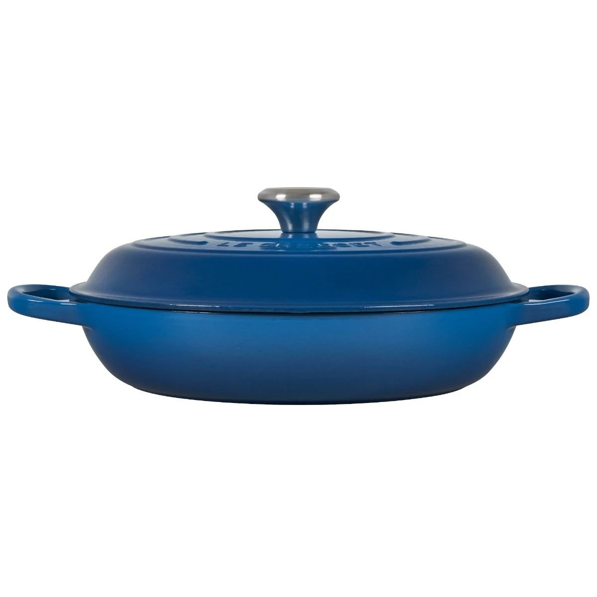 Le Creuset Marseille Blue Cast Iron Signature Braiser Features (LS2532-3059SS) Features: