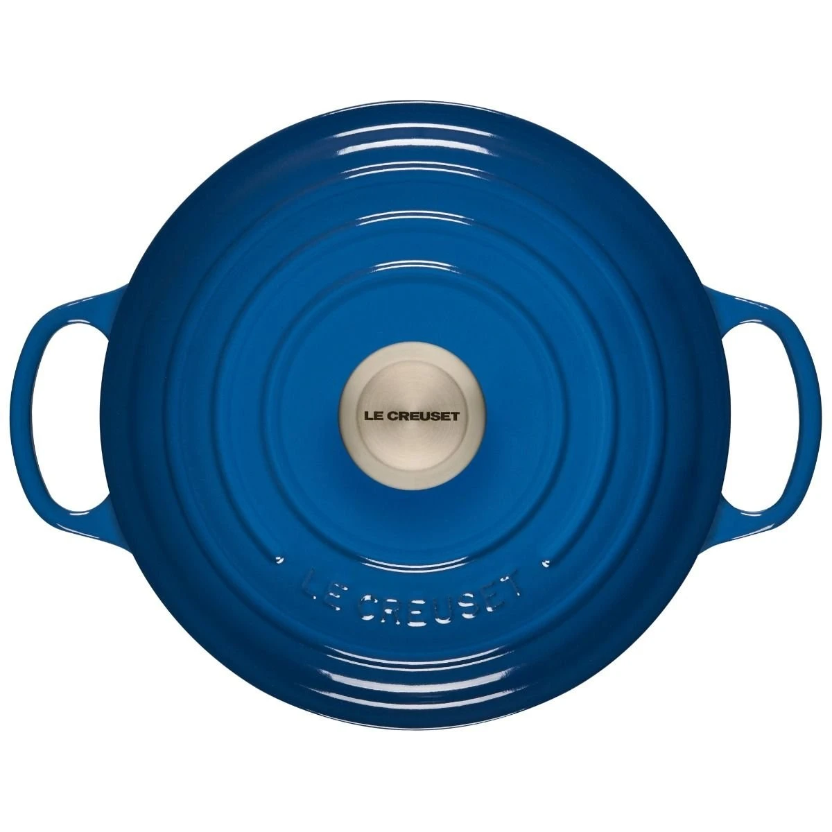 Le Creuset 4.5 Qt. Round Signature Dutch Oven with Stainless Steel Knob (Marseille Blue) Features: