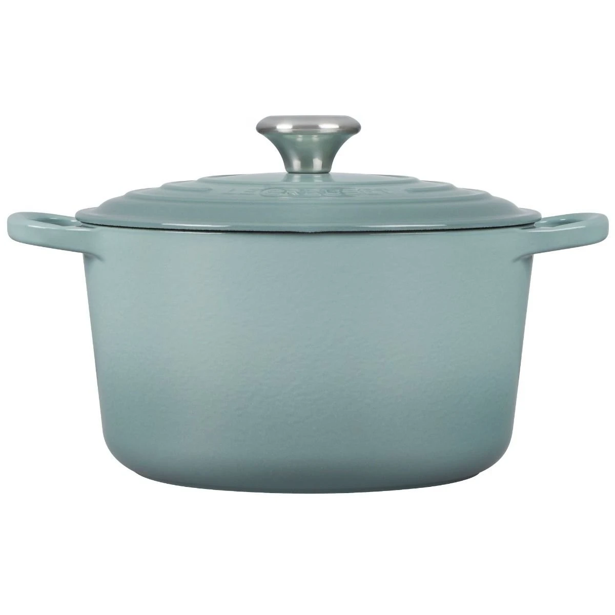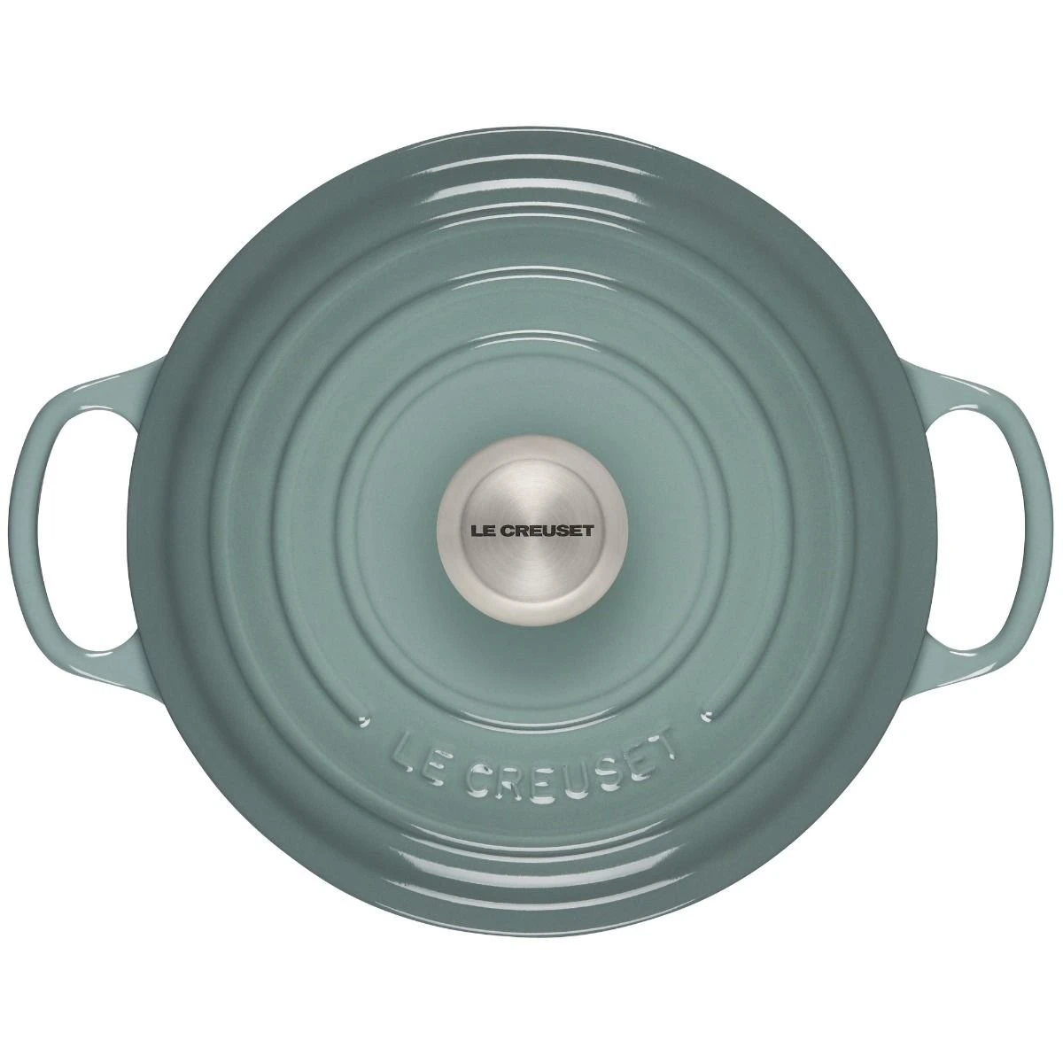 Bring the classic touch of Le Creuset cookware to your stovetop when preparing hearty stews or homestyle fried chicken with the 5.25 Qt. Signature Deep Oven in Sea Salt. Made with the durable and stylish Le Creuset enameled cast iron that has been livening kitchens for nearly a century, the Signature Deep Oven offers the masterful braising and roasting abilities of the Le Creuset Dutch Oven, with a smaller base and taller sides that allow for a larger capacity while taking up less space on your stovetop. The depth of the pot makes it the ideal vessel for preparing large batches of soups or stews, frying chicken or potatoes, or slow cooking a roast, and the tall sides and tightly sealing lid contain the spatter of boiling liquids and hot greases while trapping in flavors and circulating steam. The ready-to-use cooking surface offers the best qualities of cast iron cookware, such as even heat retention & distribution, without the need for pre-seasoning or extraneous maintenance. The beautiful Sea Salt color is a calming shade of seafoam green with a slight ombre effect which brings you the comfort of breezy, cloudy days at the beach.