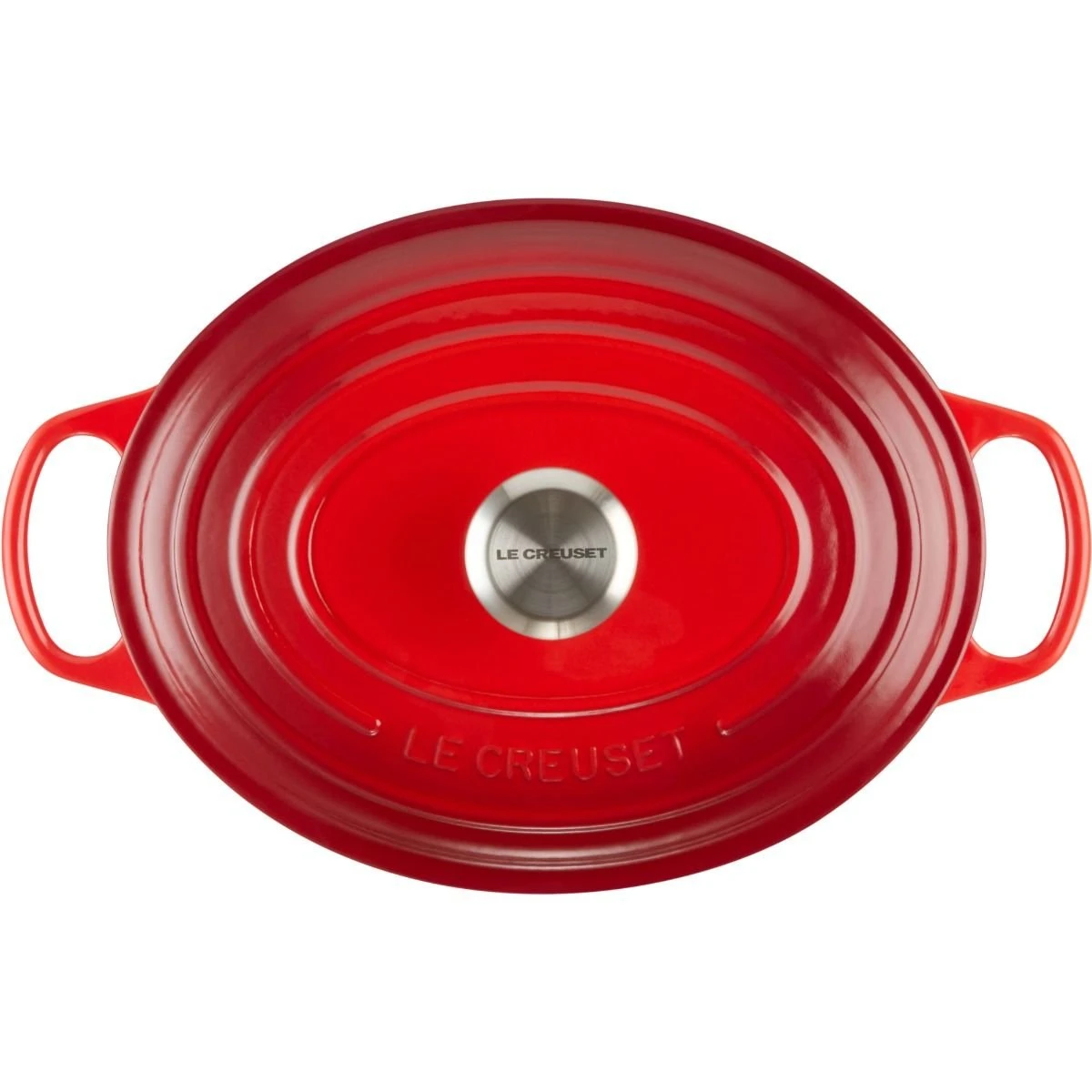 Le Creuset 5 Qt. Oval Signature Dutch Oven with Stainless Steel Knob (Cerise/Cherry Red) Features: