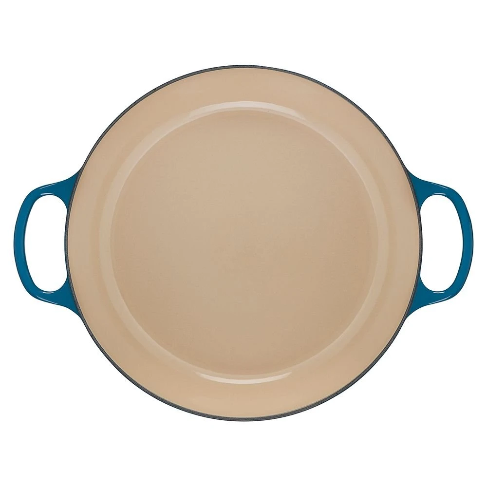 - Sand-colored interior enamel has a smooth finish that promotes caramelization, prevents sticking, and resists stains