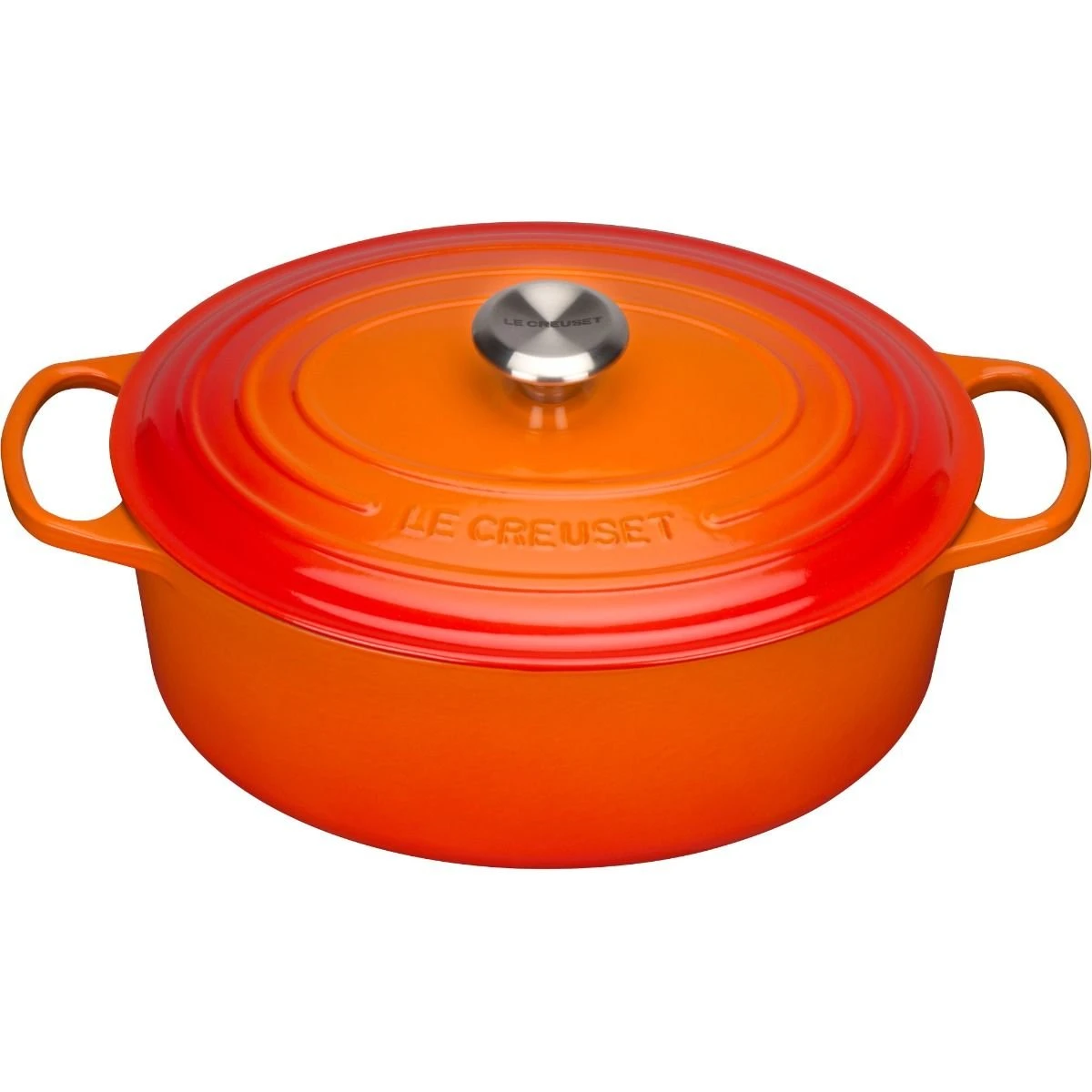 6.75 Qt. Oval Signature Dutch Oven with Stainless Steel Knob (Flame) Features: