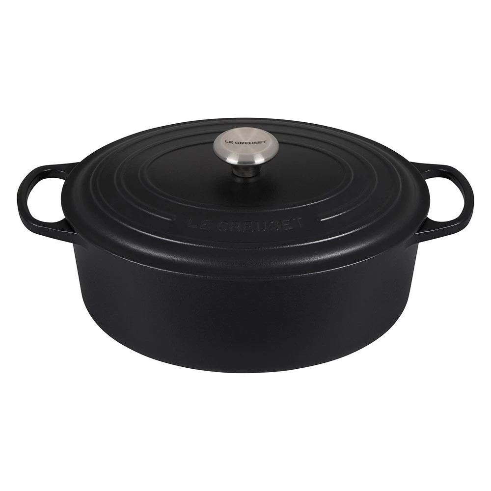 Le Creuset 6.75 Qt. Oval Signature Dutch Oven with Stainless Steel Knob (Licorice) Features: