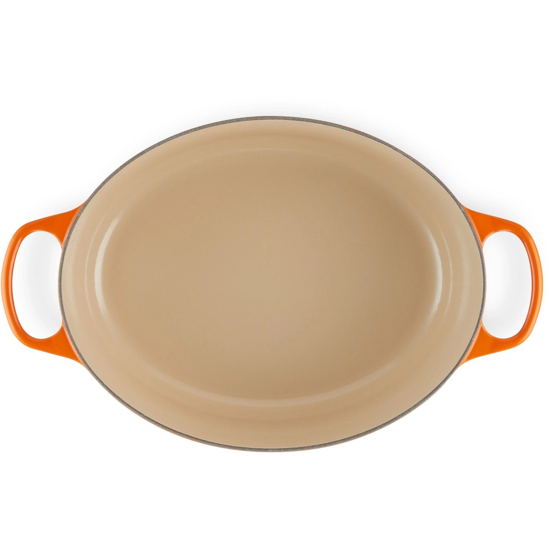 - Sand-colored interior enamel has a smooth finish that promotes caramelization, prevents sticking and resists stains