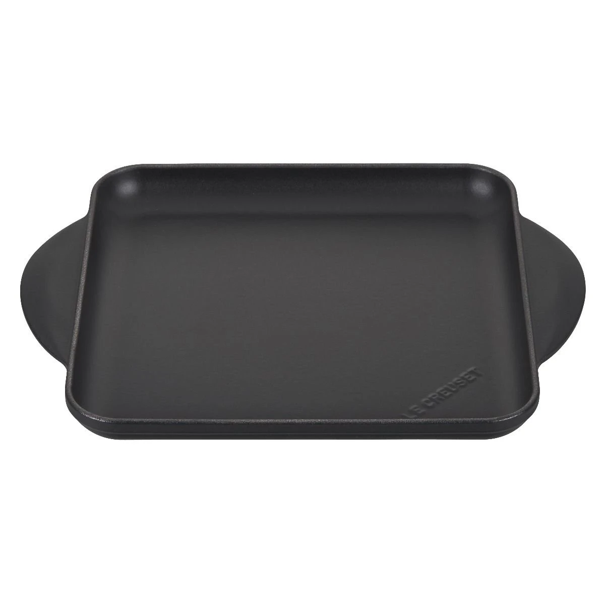 Le Creuset 9.5″ Square Signature Enameled Cast Iron Griddle Pan (Licorice) Features: