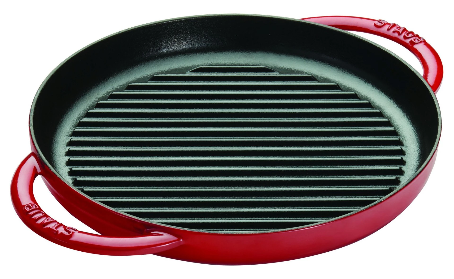 Share juicy, BBQ-grilled chicken tenders at family dinner with Staub’s Cherry Red 10 Inch Cast Iron Pure Grill Pan. This compact cast iron grill pan is made to cook your food slowly, and evenly so that every bite is just the way you want it. With this compact cast iron grill pan, you can enjoy all of the wonderful benefits of Staub cast iron cookware, without the same, bulky weight. Its interior black matte enamel coating is scratch-resistant and the handles on either side make it easy to use and maneuver. From stove to oven, this cast iron grill pan is compatible with all cook tops, including induction, and oven and broiler safe up to 500°F. With Staub’s 10” Cast Iron Pure Grill Pan, enjoy delicious home BBQ just the way you like it.