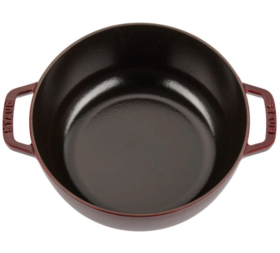 - Matt black enamel interior heats & enhances caramelizing and is excellent for searing
