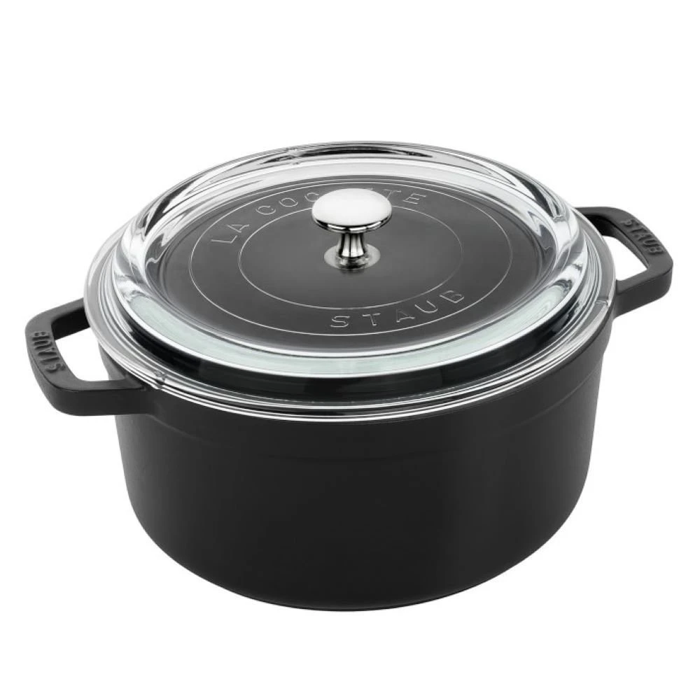 From famous French enamel and cast iron masters at Staub, this round cocotte with glass lid is everything you need to make your favorite, most delicious meals!