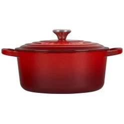 Designed with durability, style, and classic French cooking in mind, this cocotte has a variety of features to help craft mouth-watering foods. The interior of the cocotte has a rough texture, which better facilitates browning of meats, and the cast-iron construction heats up quickly and cooks evenly. The cocotte’s enamel coating not only provides vibrant color, but also makes it easier to use on any stove and long-lasting. No seasoning required!