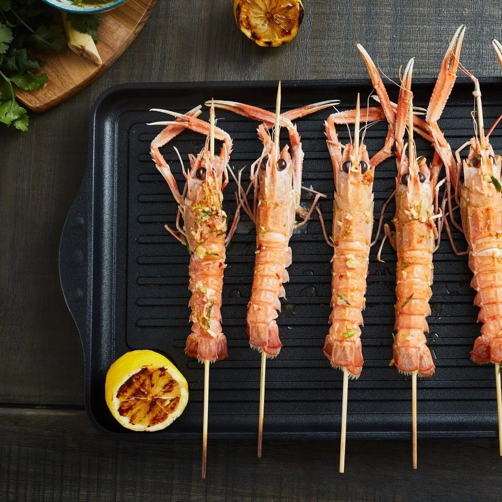 True taste of the outdoors! Grill up all your favorites right from the comfort of your own kitchen with the XD Classic Non-Stick Double Burner Grill by Swiss Diamond. Entirely cast in aluminum, the grill exhibits high durability while resisting warping with daily use, for years of delicious meals without worry. Throw on some lobster, steaks, and sausage while you’re at it; now, heat from the double burner distributes evenly over the food for delicious turnouts, without even having to go beyond the medium setting. As the meat or other food browns or cooks ever so nicely, the fat, oil, and other drippings on the grill slide down the deep ridges to collect in the side well channel. This grill’s patented non-stick surface is now designed with 20% more diamonds than before, still releasing food with such ease, if not more so, cleaning up just the same afterward – also, there are no cords to get tangled up with either, resulting in no wasted space whatsoever on the countertop or wherever. No matter how bleak the weather looks like out there, the Swiss Diamond XD Classic Non-Stick Double Burner Grill gives you just the compact cooking surface to grill ‘n serve all-year round, anywhere, anytime.