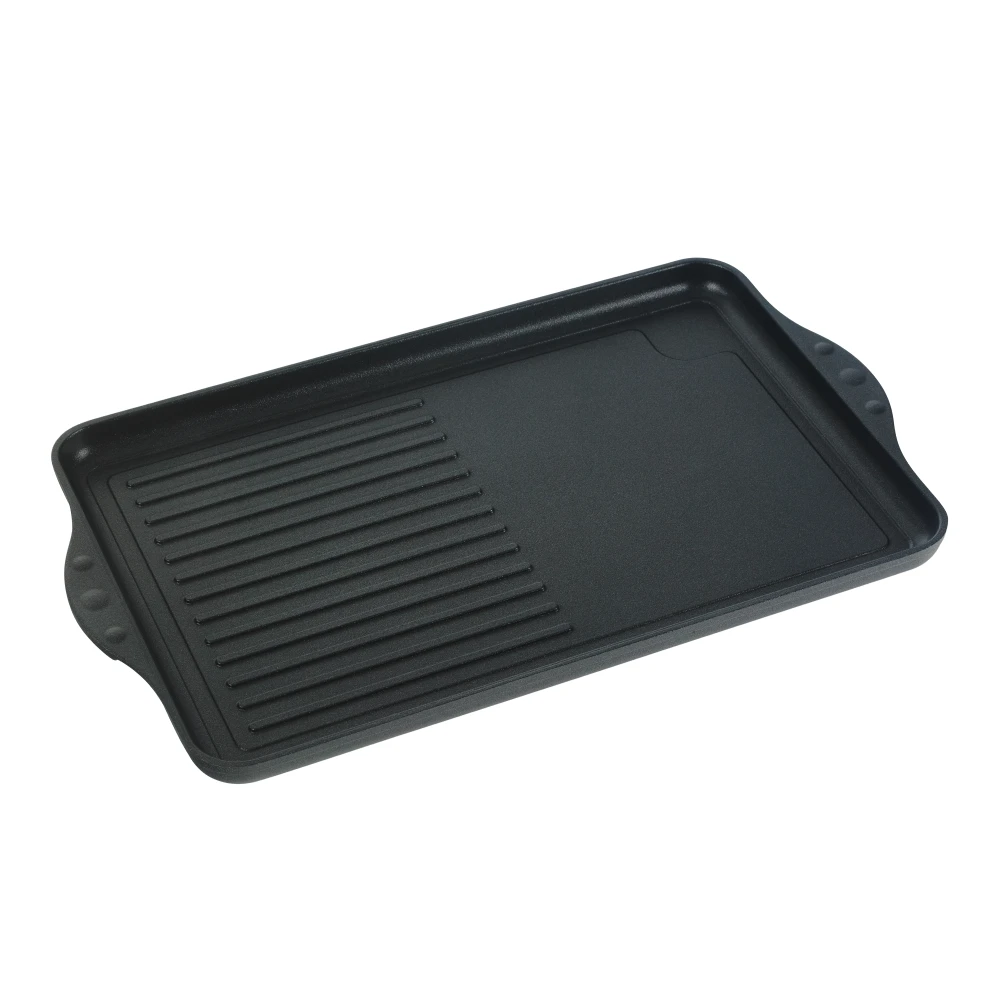 Best of both worlds! Combining a grill with the classic griddle into one versatile cooking surface, the XD Classic Double Burner Grill & Griddle Combo by Swiss Diamond has your cooking or grilling needs covered, without having to watch multiple dishes. Entirely cast in aluminum, the griddle/grill combo exhibits high durability while resisting warping with daily use, for years of delicious meals without worry. In-between the rivet-free cooking surface and aluminum base, a corrosion-resistant layer enhances the durability already there. Throw on some eggs, bacon, and sausage while you’re at it; now, heat from the double burner distributes evenly over the food for delicious turnouts. A patented non-stick surface releases food with such ease, cleaning up just the same afterward – also, there are no cords to get tangled up with either, resulting in no wasted space whatsoever on the countertop or wherever. No matter what time of day it is, satisfy your cravings in one convenient cooking location with the Swiss Diamond XD Classic Double Burner Grill & Griddle Combo.